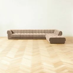 Piazza 4-Piece Modular White Linen Sectional Sofa with Ottoman, 127” – Modern Living Room Furniture