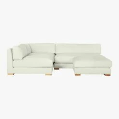 Piazza 4-Piece Modular White Linen Sectional Sofa with Ottoman, 105″ – Modern Living Room Furniture