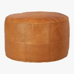 Round Saddle Leather Pouf Medium – Stylish Living Room Furniture