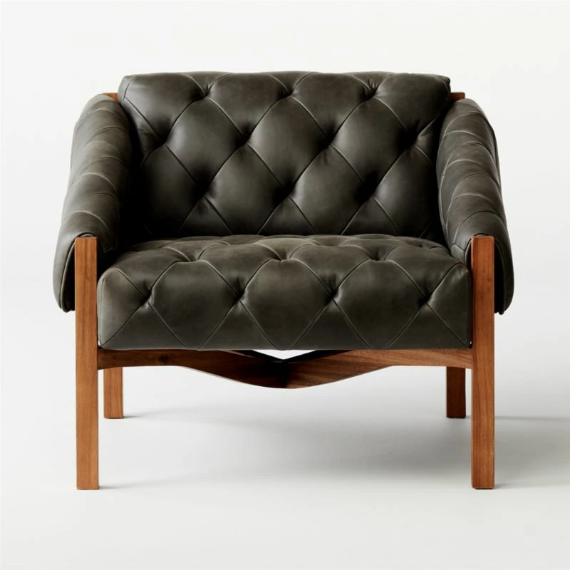 - Crafted with high-quality charcoal leather, the Abruzzo Tufted Chair offers both durability and a luxurious feel, making it a standout piece in any living room.