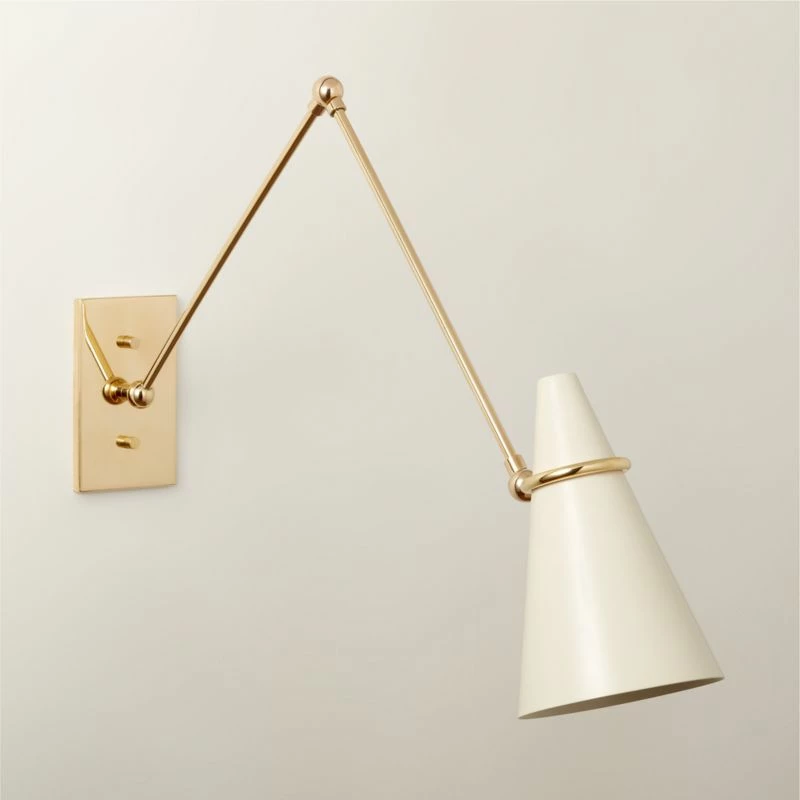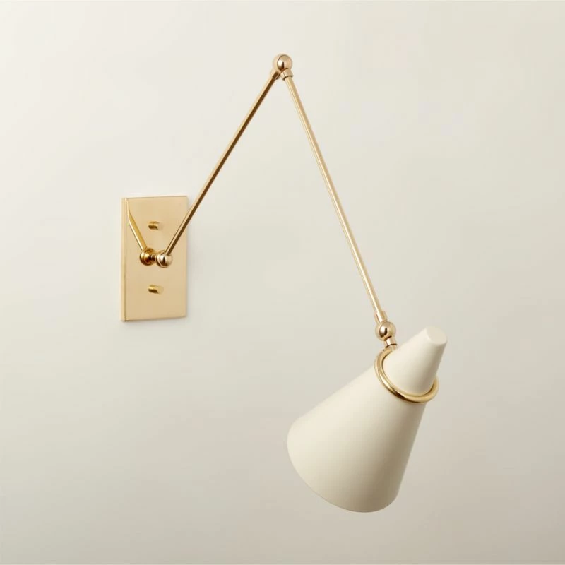 • Elevate your home decor with the Aldus Ivory and Polished Brass Articulating Wall Sconce. This modern lighting fixture combines elegant ivory accents with a polished brass finish for a timeless look.