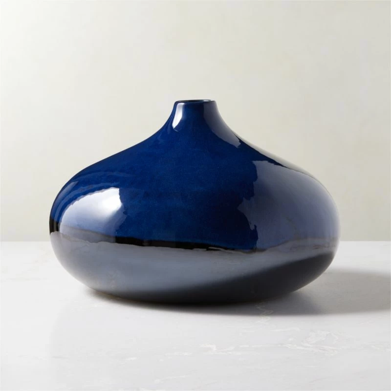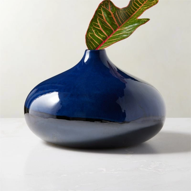 - This round vase features a stunning azure blue finish, making it a perfect centerpiece for your living room, dining table, or office space.