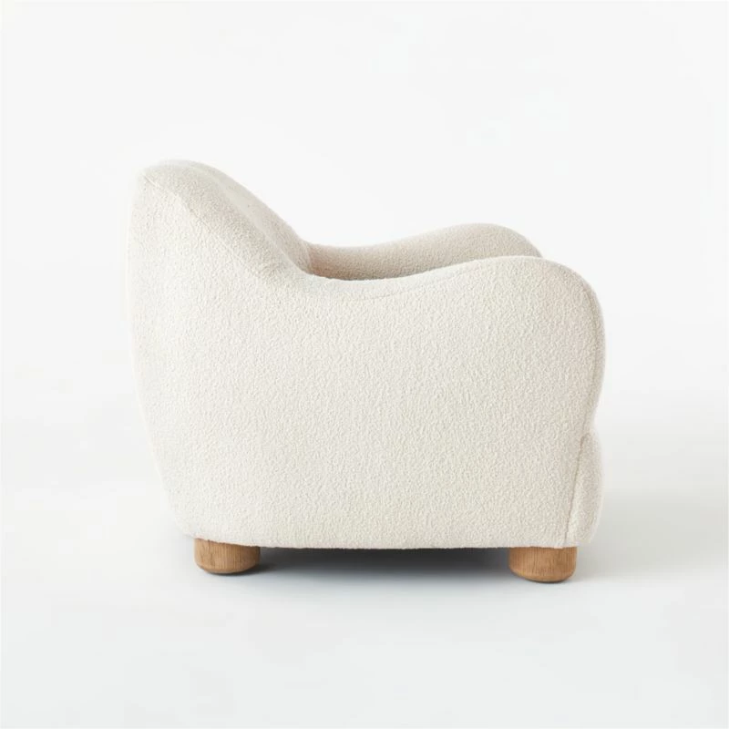 - Experience ultimate comfort with the Bacio Cream Boucle Lounge Chair, designed to enhance your living room’s aesthetic. The chair features a plush boucle fabric that adds a touch of elegance and sophistication.