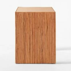 Natural Indonesian Kubu rattan follows the subtle, sensuous curves of this desk by Barcelona-based Mermelada Estudio. Inlaid tempered glass top creates a flat writing surface; center drawer provides storage. CB2 exclusive.