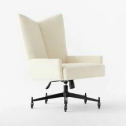 - Crafted with premium boucle fabric, this chair combines durability with a sophisticated cream finish, adding a touch of elegance to any workspace.
