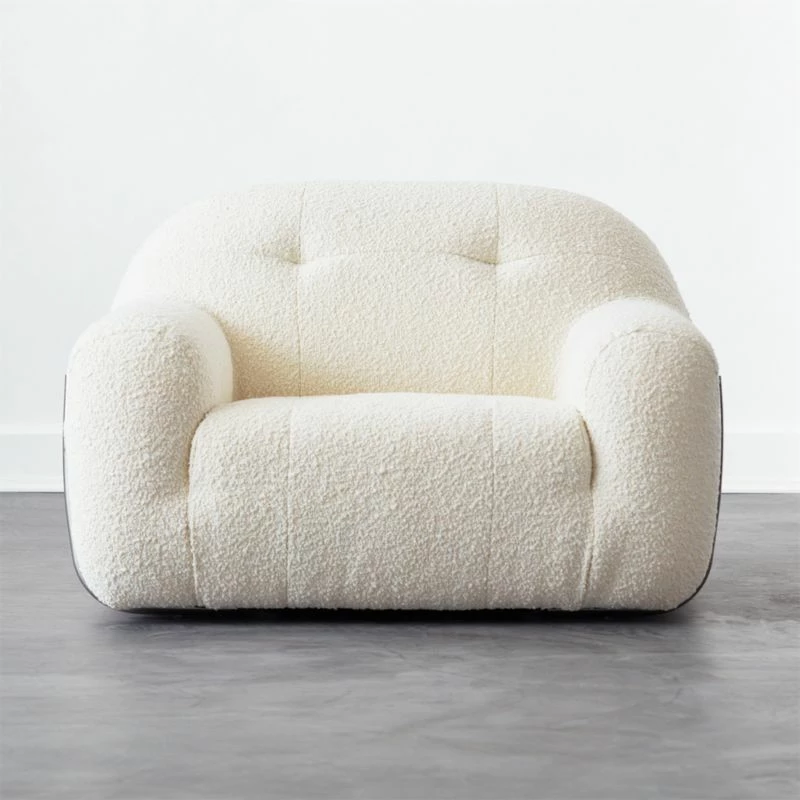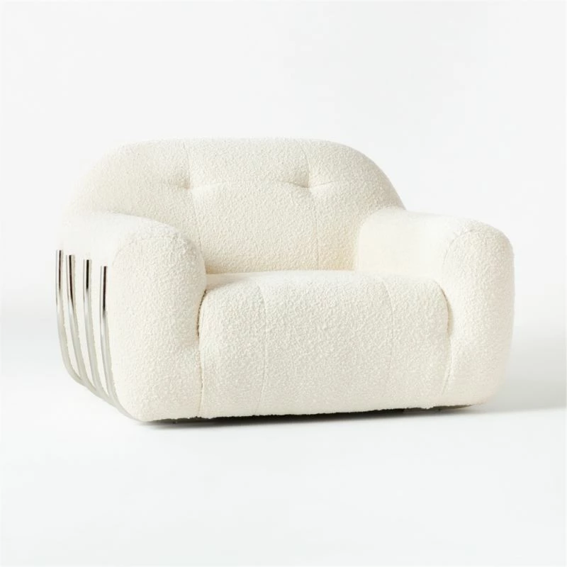- Enhance your living room with the Brace Cream Boucle Chair, designed to add a touch of modern elegance to any space. Its plush boucle fabric and sleek design make it a perfect centerpiece.