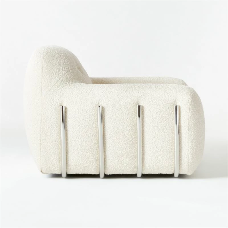 - Available in a timeless cream color, the Brace Boucle Chair seamlessly blends with various interior styles, from minimalist to contemporary decor.