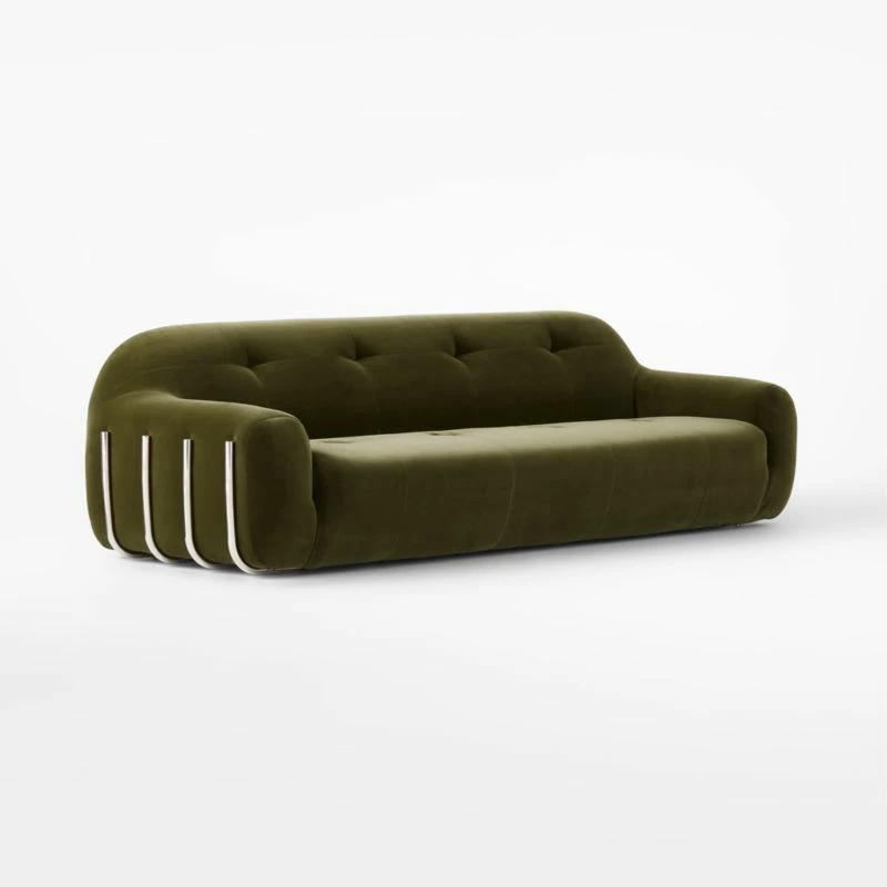 - The Brace Green Velvet Tufted Sofa combines luxury and comfort with its plush velvet fabric and tufted design, making it a perfect centerpiece for your living room.