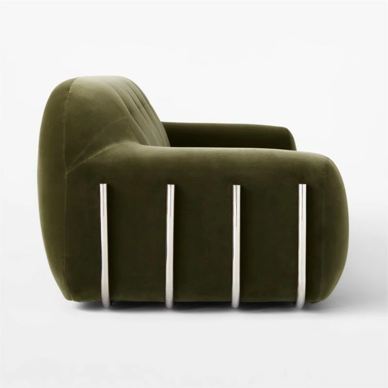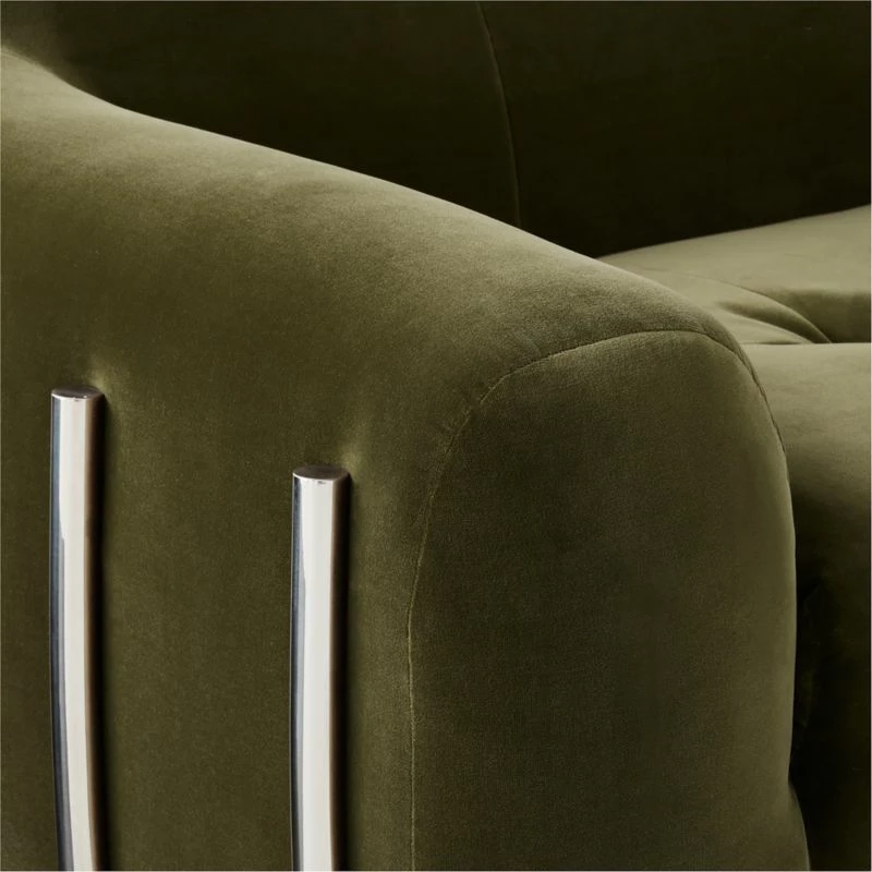 - Available in a rich green velvet finish, this sofa adds a touch of sophistication and elegance to any living space, complementing a variety of interior styles.