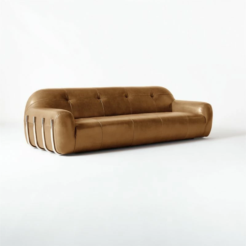 - Transform your living room with the Brace Leather Tufted Sofa. Order now and experience the perfect blend of style, comfort, and durability.