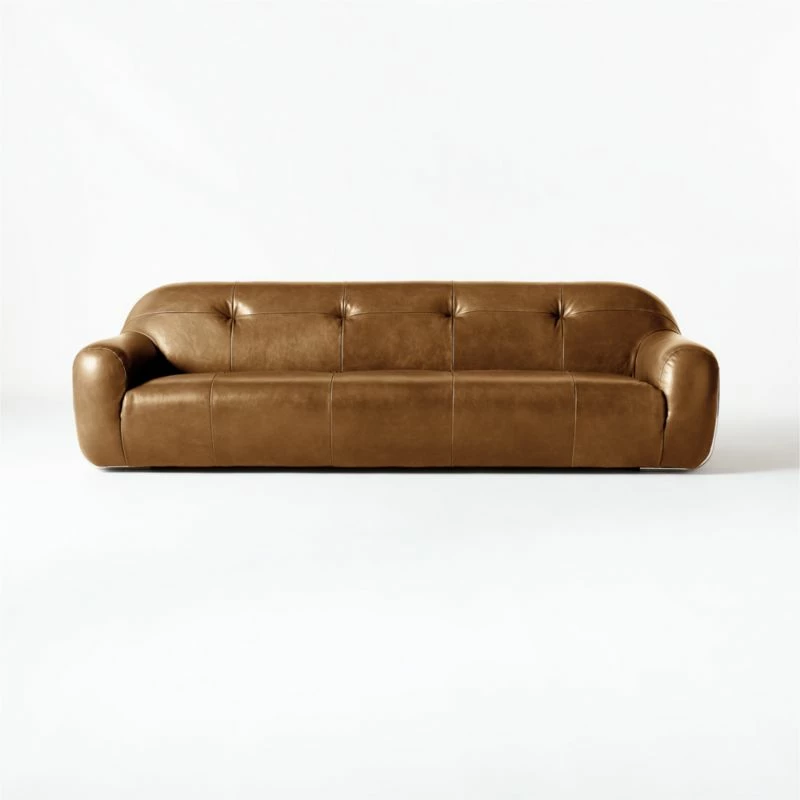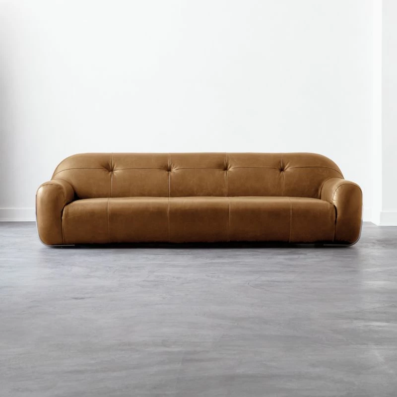 - Experience unparalleled comfort with the Brace Leather Tufted Sofa. Designed with premium leather, this sofa offers a luxurious seating experience for your living room.
