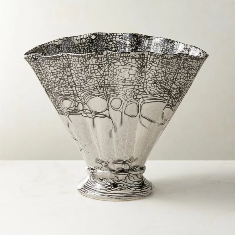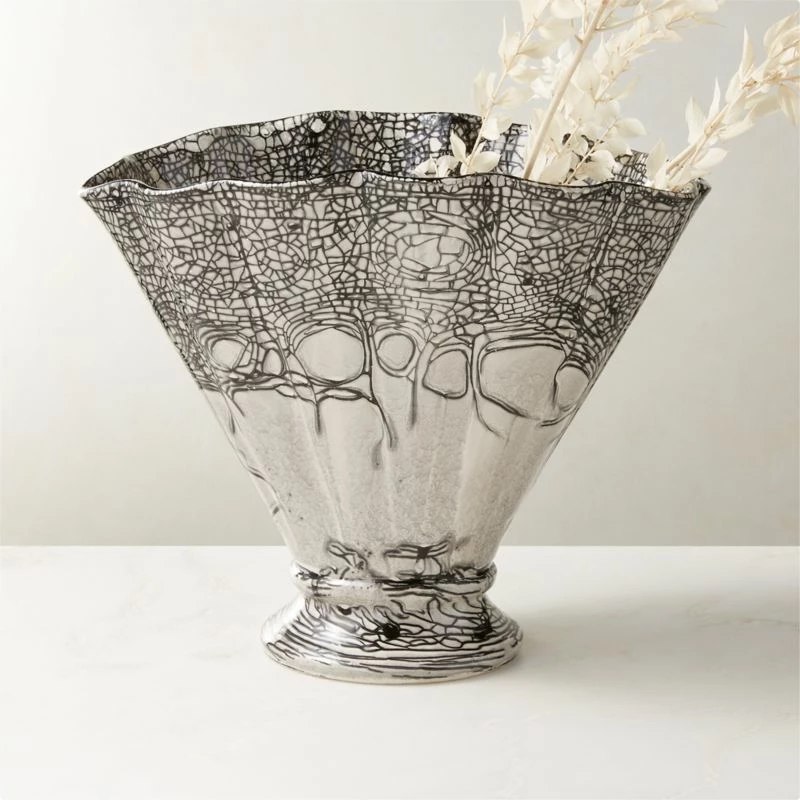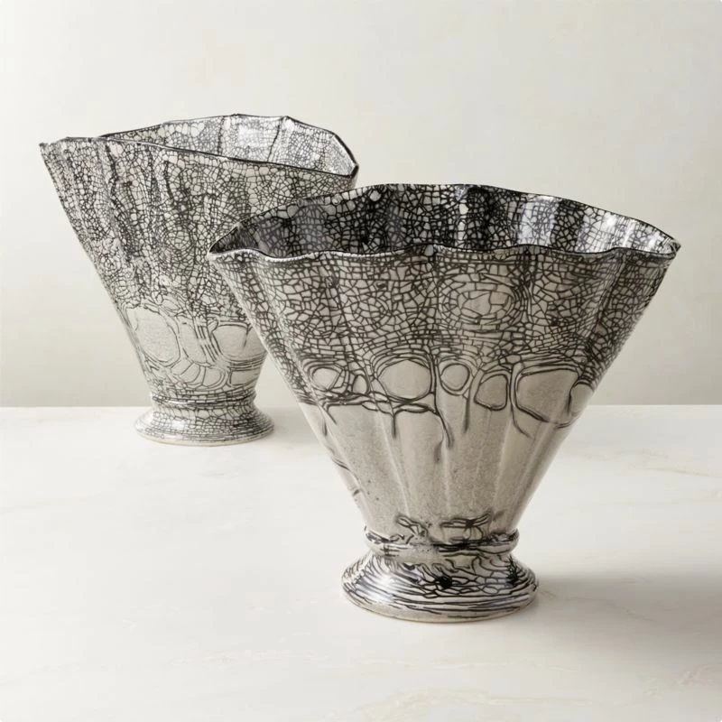 - The Cavo Scalloped Black and White Vase is a stunning addition to any home decor. Its unique scalloped design and contrasting colors make it a standout piece.