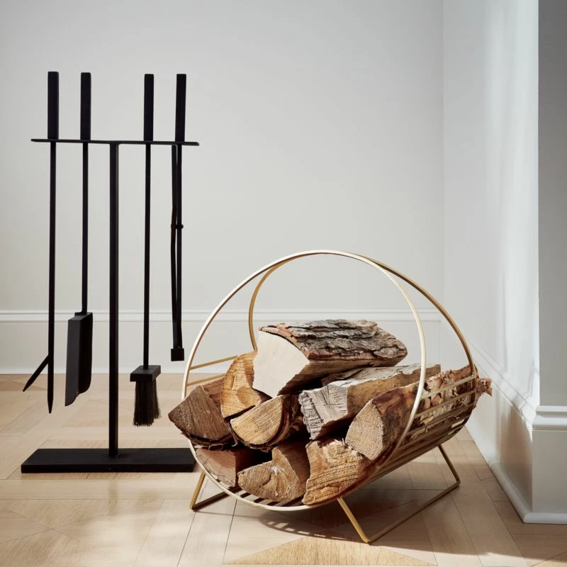 - The Chord Antique Brass Log Holder combines functionality with timeless elegance. Its antique brass finish adds a touch of sophistication to any fireplace setting.