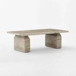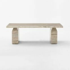 - The Civita Brown Travertine Coffee Table features a stunning brown travertine surface, adding a touch of sophistication to any living room.