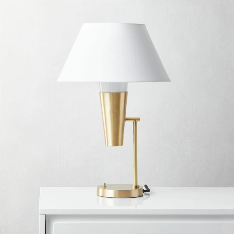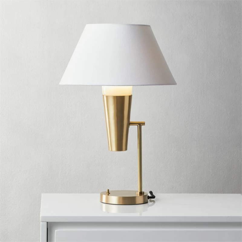 - Equipped with an energy-efficient LED bulb, the Exposior Brass Table Lamp provides bright, warm light while saving on energy costs. The lamp is easy to assemble and comes with a user-friendly on/off switch.