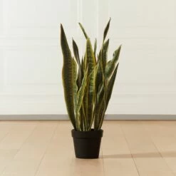 - Elevate your home decor with our Faux Potted Snake Plant 3′. This realistic artificial plant is perfect for adding a touch of greenery to any room without the need for maintenance.