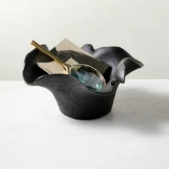 - Use the Flounce Black Teak Decorative Bowl to store keys, jewelry, or other small items. It also serves as a beautiful centerpiece or accent piece to enhance your home decor.