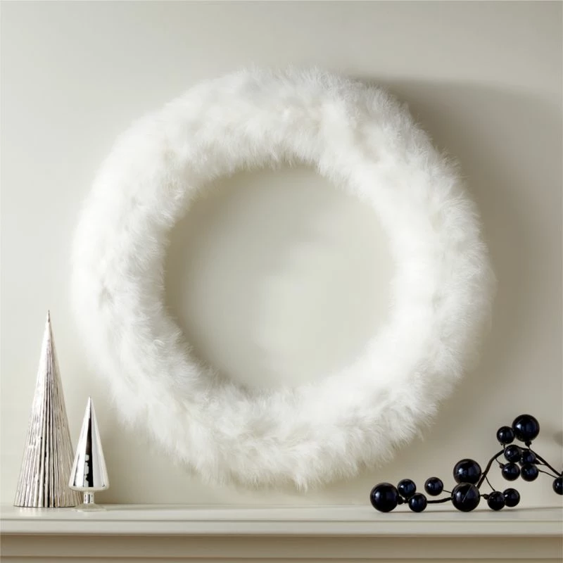 - Crafted with high-quality fluffy white feathers, this wreath offers a luxurious and elegant look. Its lightweight design makes it easy to hang and arrange.