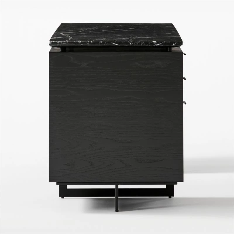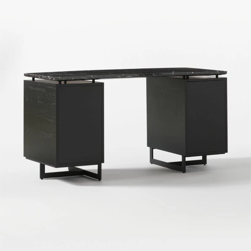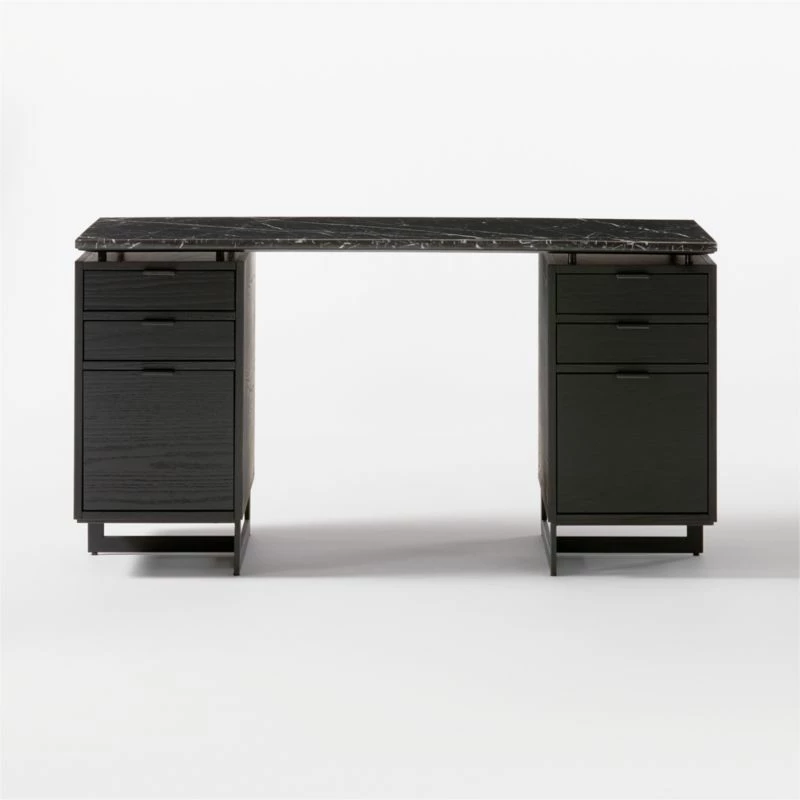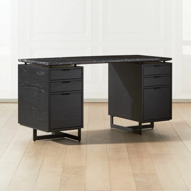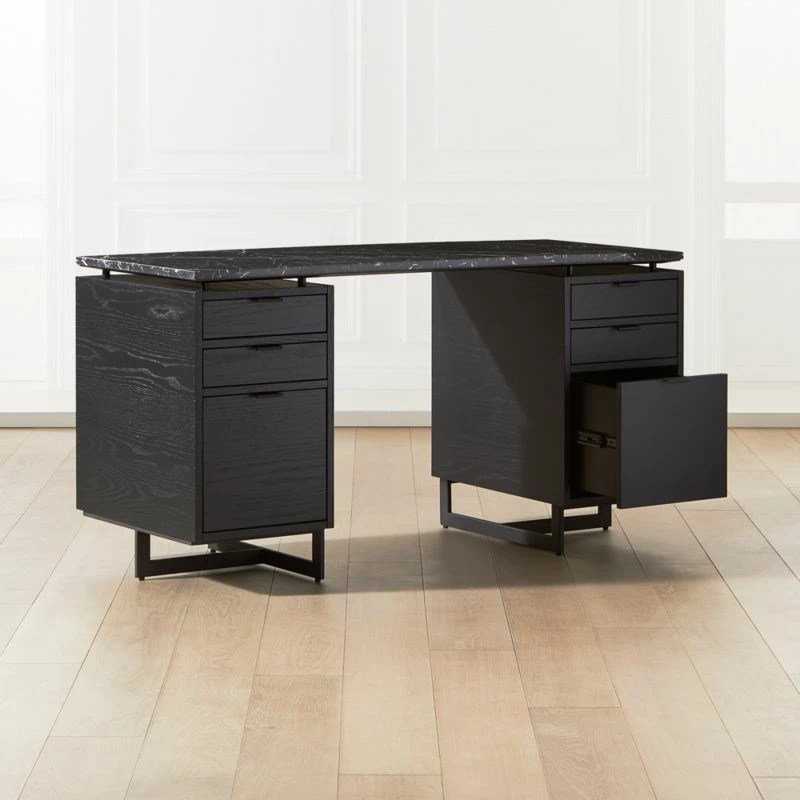 - The Fullerton 6-Drawer Black Oak Wood Desk is designed to enhance your office space with its elegant black oak finish and sophisticated black marble top.