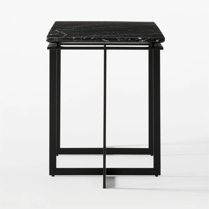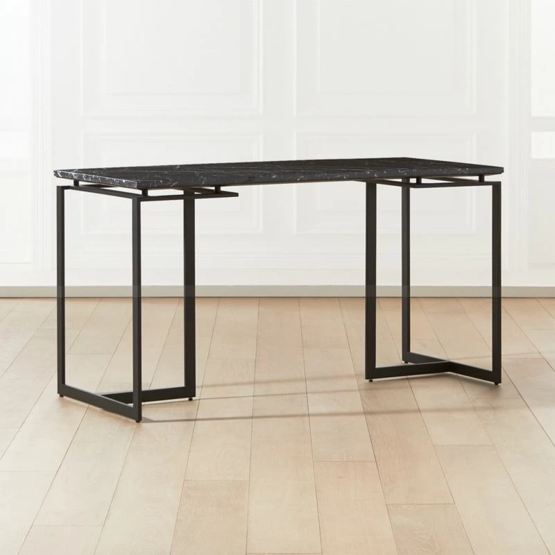 - The Fullerton Black Metal Desk combines a sturdy metal frame with a luxurious black marble top, offering both durability and elegance for your office space.