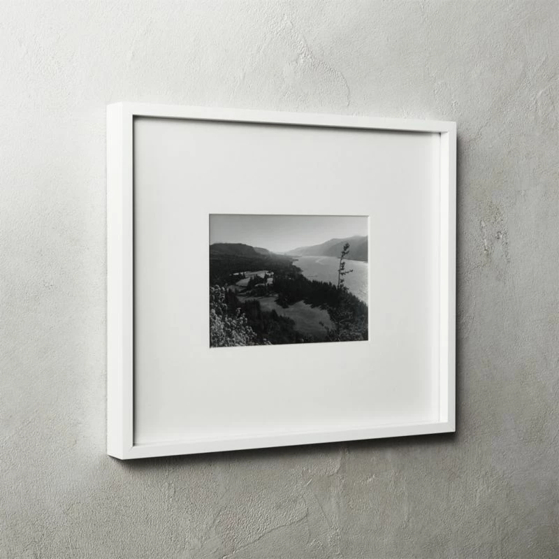 - The Gallery White Picture Frame with White Mat is designed to add a touch of elegance to your wall decor. Perfect for displaying 5″x7″ photos, this frame complements any interior style.