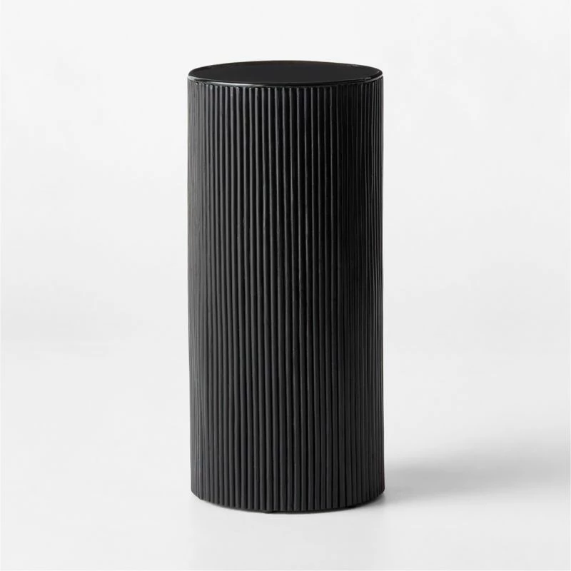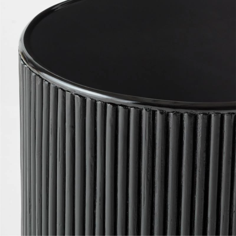 - Elevate your living room decor with the Giro Small Black Rattan Pedestal Table. Its sleek black finish and rattan design make it a perfect addition to any modern home.