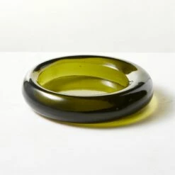 - Elevate your home decor with our Bangle Green Glass Decorative Bowl. Its vibrant green color and sleek design make it a versatile piece for any room.
