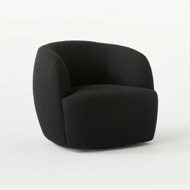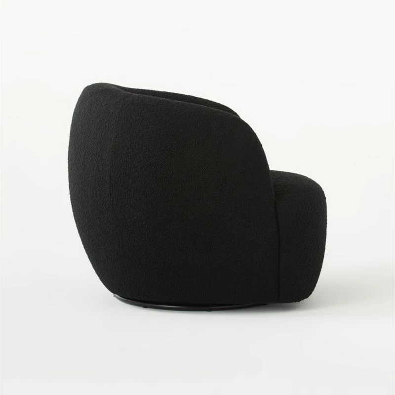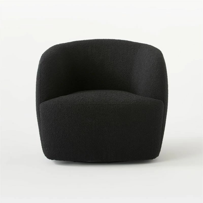 - Easy to assemble and built to last, the Gwyneth Black Boucle Swivel Chair is perfect for both small apartments and spacious homes.