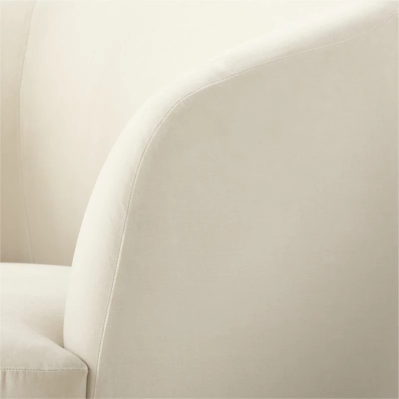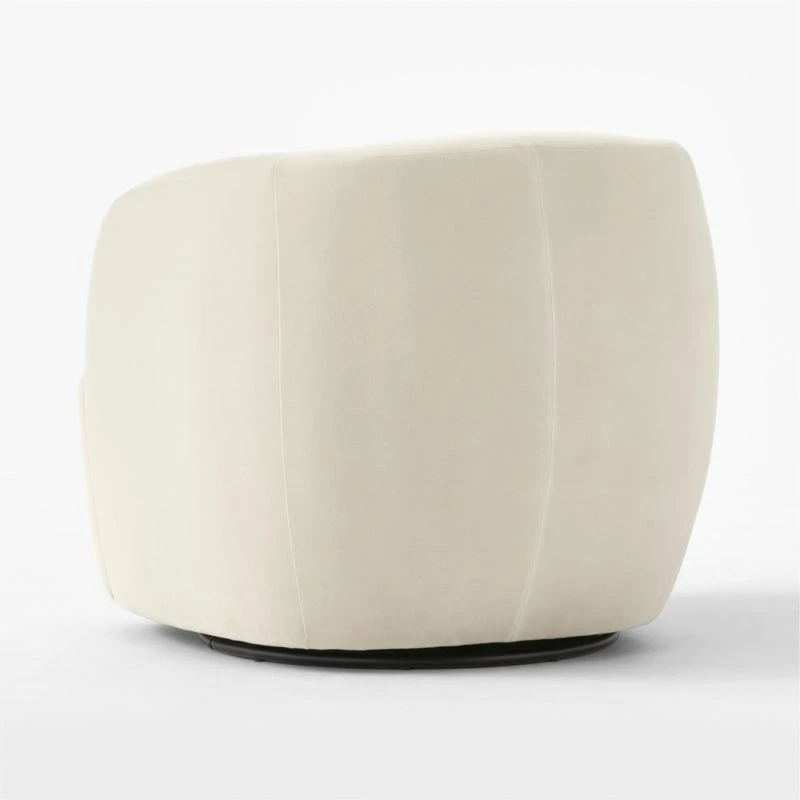 - Crafted with premium velvet upholstery, the Gwyneth Swivel Chairs provide a soft and luxurious feel. The warm white color adds a touch of sophistication to any room.
