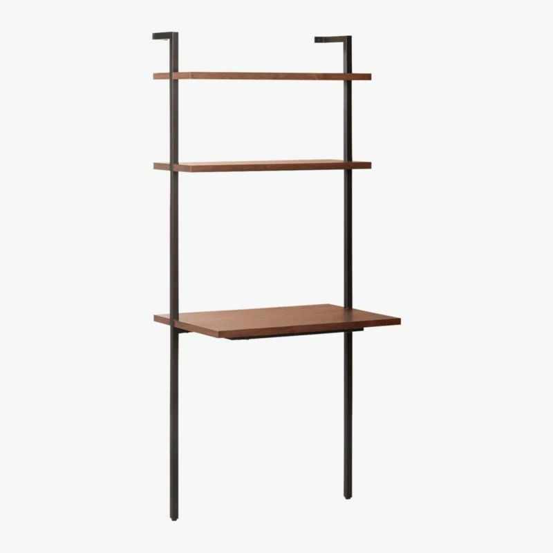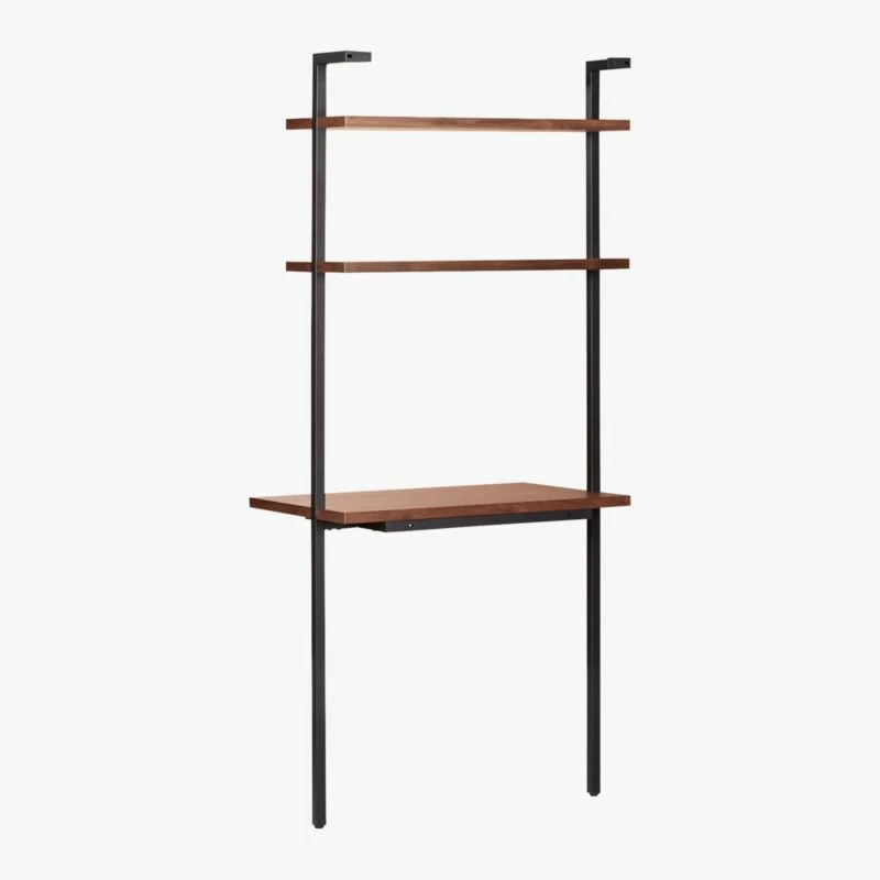 - The Helix 70” Walnut Wood Wall Mount Desk with Shelves is designed to maximize your workspace efficiency. Its sleek walnut wood finish adds a touch of elegance to any office or home setting.