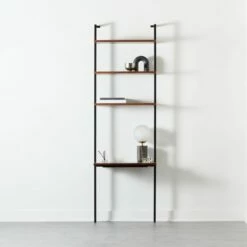 Party on top, business on the bottom. Three fixed walnut veneer shelves pan out in a powdercoated metal frame. Modularly designed to pull double duty as a display/work space and looks even better standing next to our Helix walnut bookcase. Stud mounting recommended; hardware included for drywall installation. CB2 exclusive.