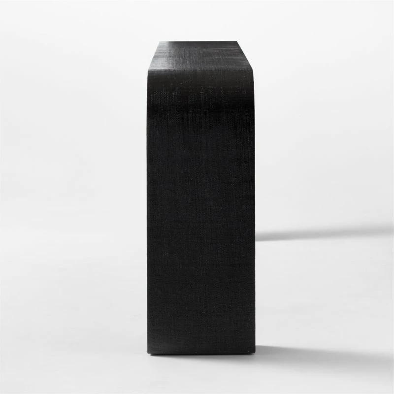 - Crafted with high-quality black lacquered linen, this console table is both durable and stylish, making it a perfect addition to any contemporary home.