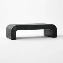 - Enhance your living room with the Horseshoe Black Laquered Linen Coffee Table, featuring a sleek black finish and elegant linen texture.