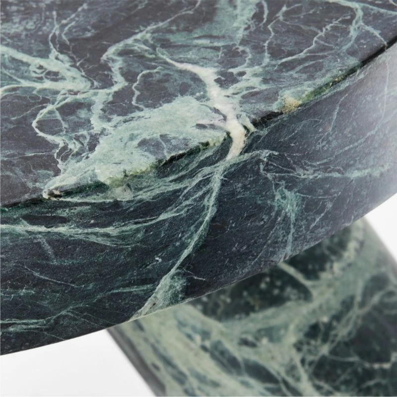 - The Jaxx Round Green Marble Side Table Tall combines modern elegance with functionality. Its sleek design and green marble top make it a stylish addition to any living room.