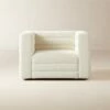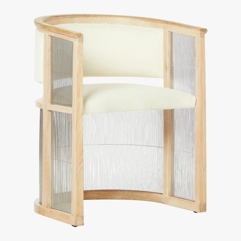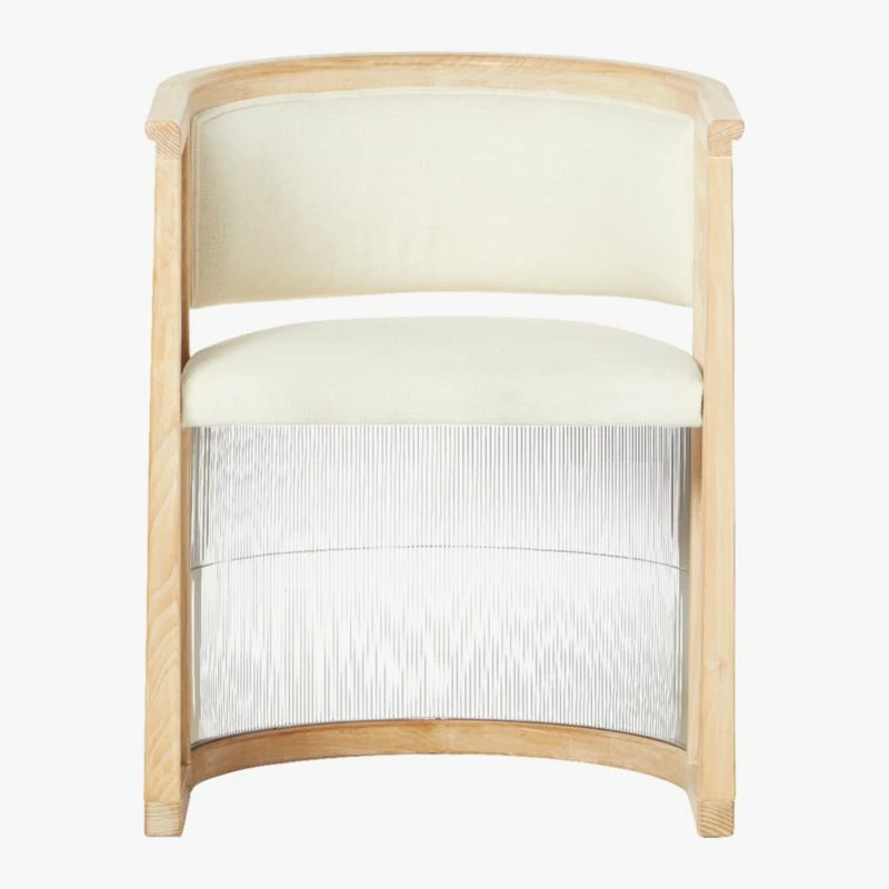- The Kaishi White Fabric Chair combines modern design with comfort, making it a perfect addition to any living room. Its white fabric upholstery and whitewashed ash frame create a sleek and contemporary look.