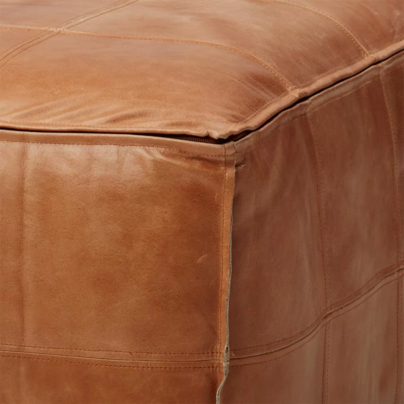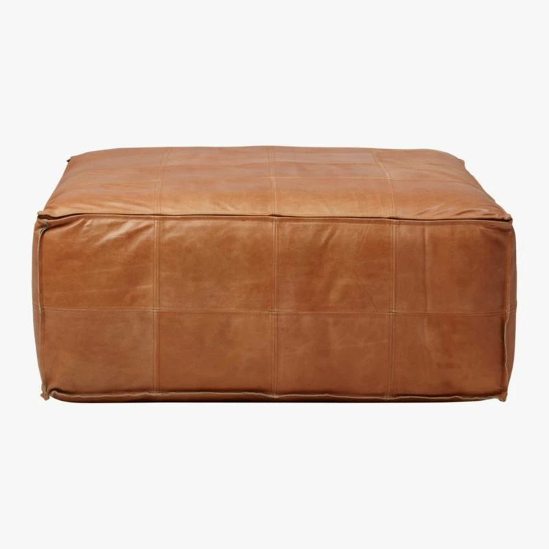 - Crafted from premium brown leather, this Large Ottoman Pouf adds a touch of elegance to any living room. Its sturdy construction ensures long-lasting durability.