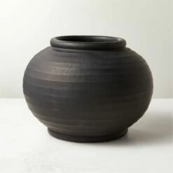 - Enhance your home’s aesthetic with the Leto Round Black Terracotta Vase. Whether placed on a dining table, shelf, or mantel, it effortlessly elevates your decor.