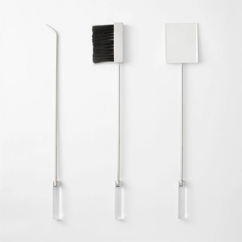 - The Maddox Polished Stainless Steel & Acrylic Fireplace Tools Set of 3 combines durability and modern design, making it a perfect addition to any home. This set includes essential tools for maintaining your fireplace with ease.