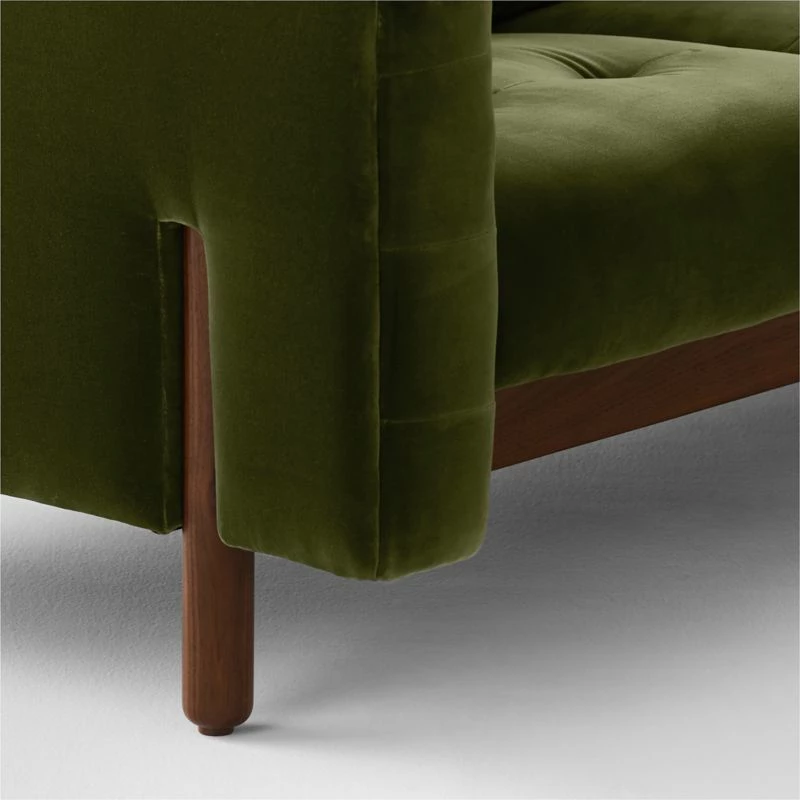 - Crafted with high-quality green velvet fabric, the Marconi Sofa offers a soft, luxurious feel while being easy to maintain and clean.
