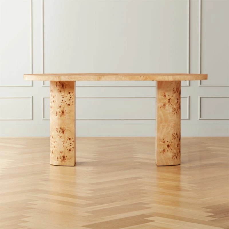 Designed by Studio Anansi, rounded edges and chunky half-moon legs give off vintage vibes in a high-end way. Burl wood veneer desk is ideal for small office spaces and would greet guests beautifully in the entryway. Textured goodness with yummy neutral tones. Learn about Studio Anansi on our blog. CB2 exclusive.