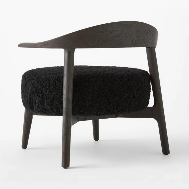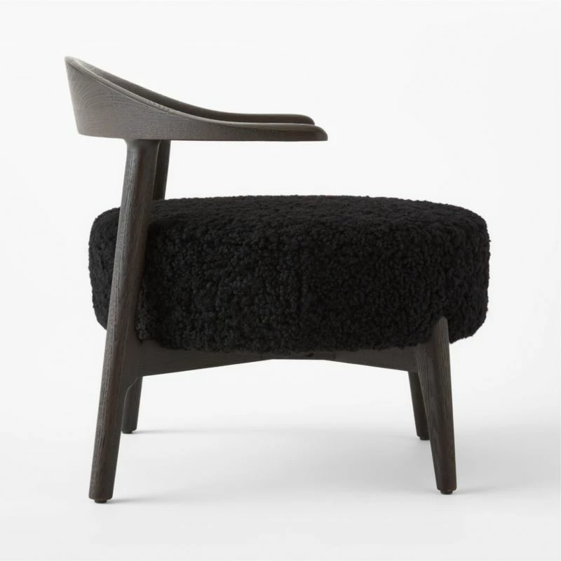 - Enhance your living room decor with the Matador Black Shearling Accent Chair. Its luxurious shearling accents and contemporary black frame create a perfect blend of comfort and elegance.
