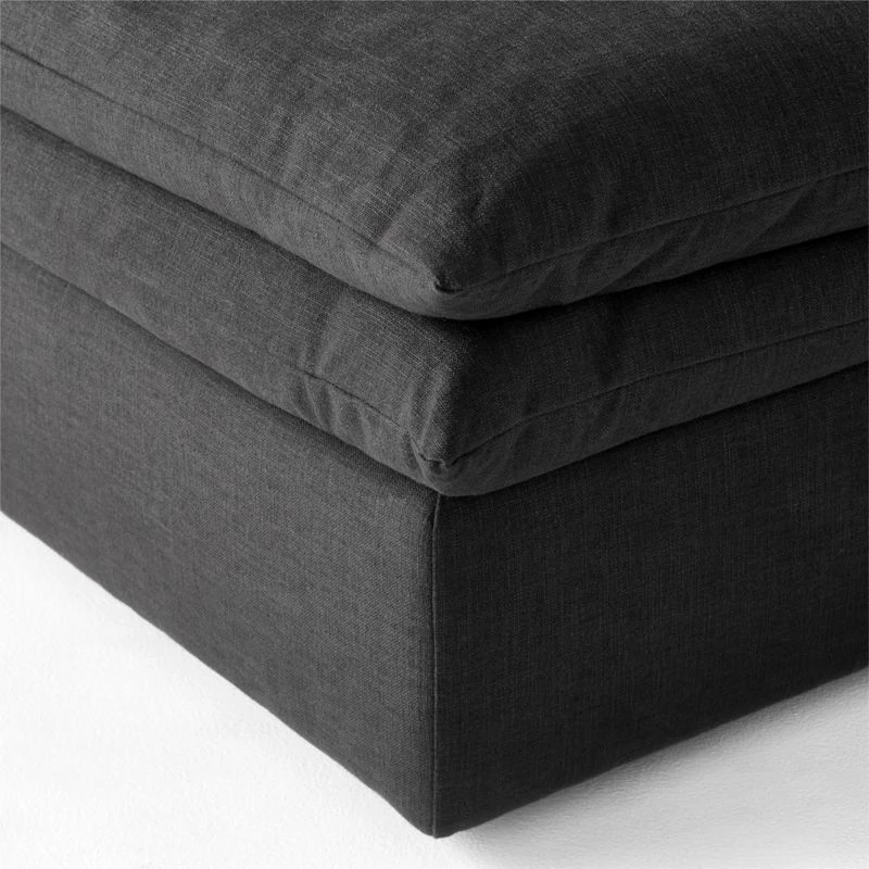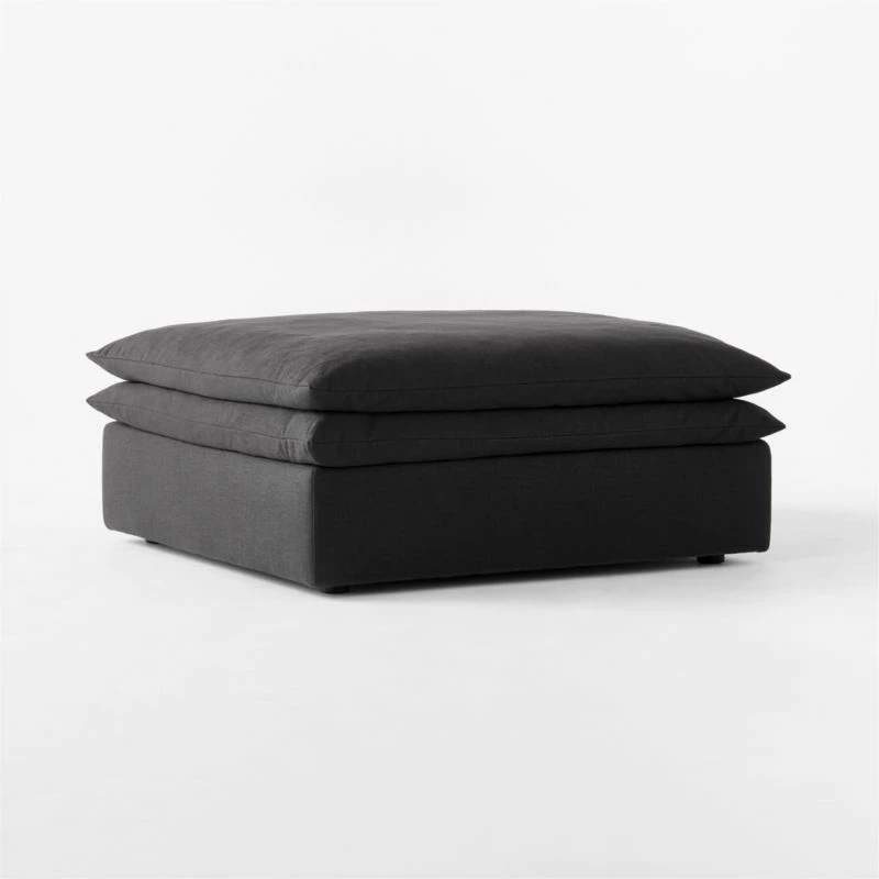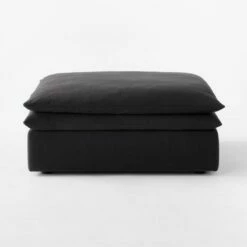 - Enhance your living space with the Mattea Onyx Black Performance Linen Ottoman. Its sleek design and premium linen fabric make it a perfect addition to any modern home.