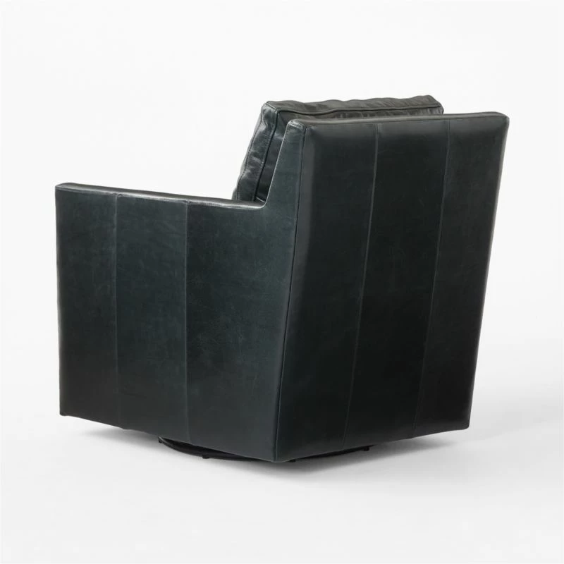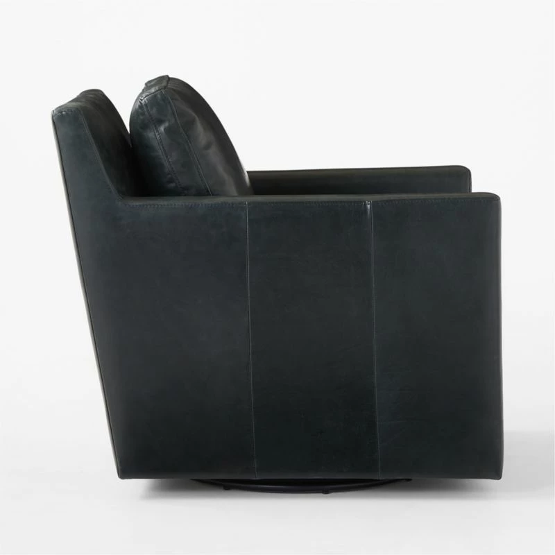 - Elevate your living room décor with the Monsef Black Leather Swivel Chair. Its sleek black leather upholstery and modern design make it a perfect addition to any contemporary space.