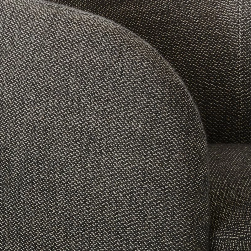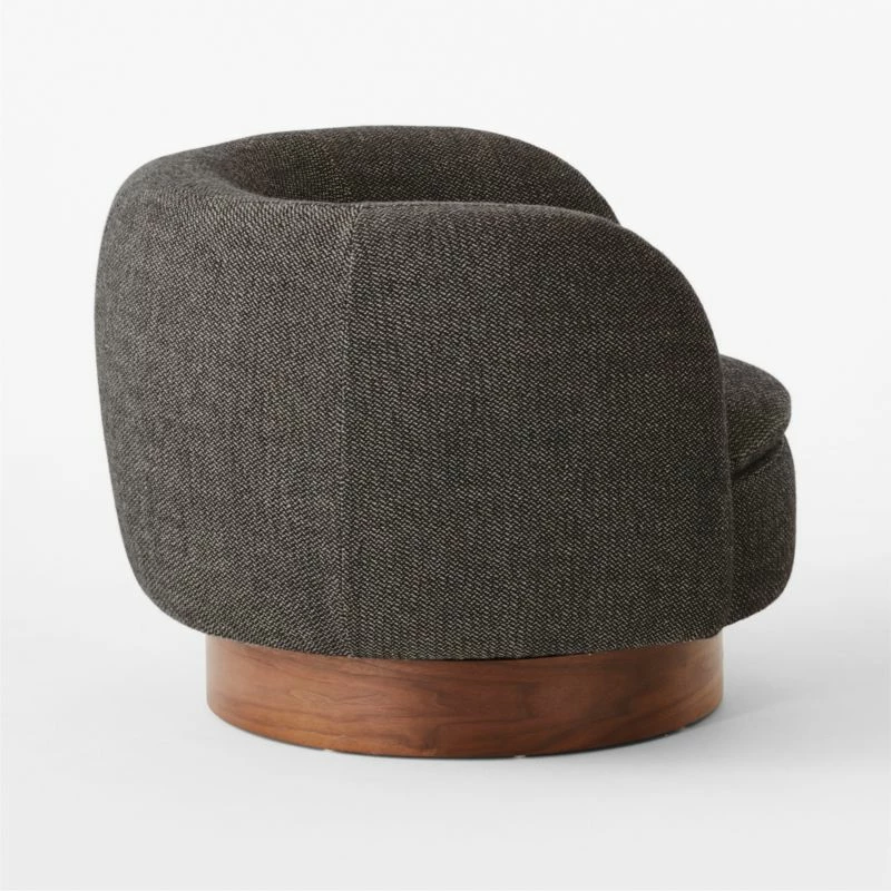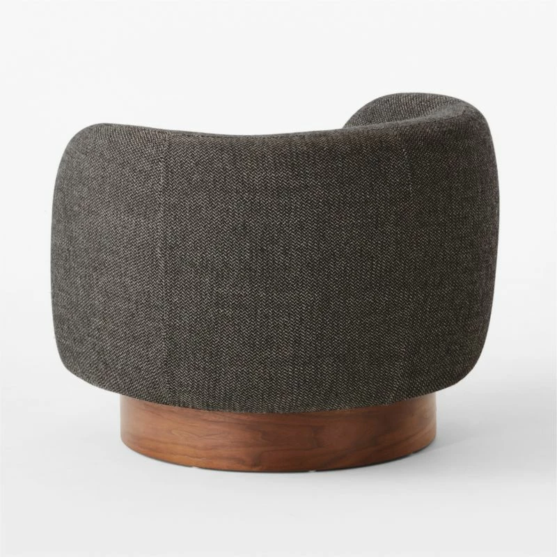 - Enhance your living room with the Muir Grey Woven Swivel Chair. Its modern design and neutral grey color seamlessly blend with any decor.