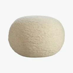 - Elevate your living room decor with our Natural Wool Wrap Pouf. Handcrafted with premium wool, this pouf offers both style and comfort.