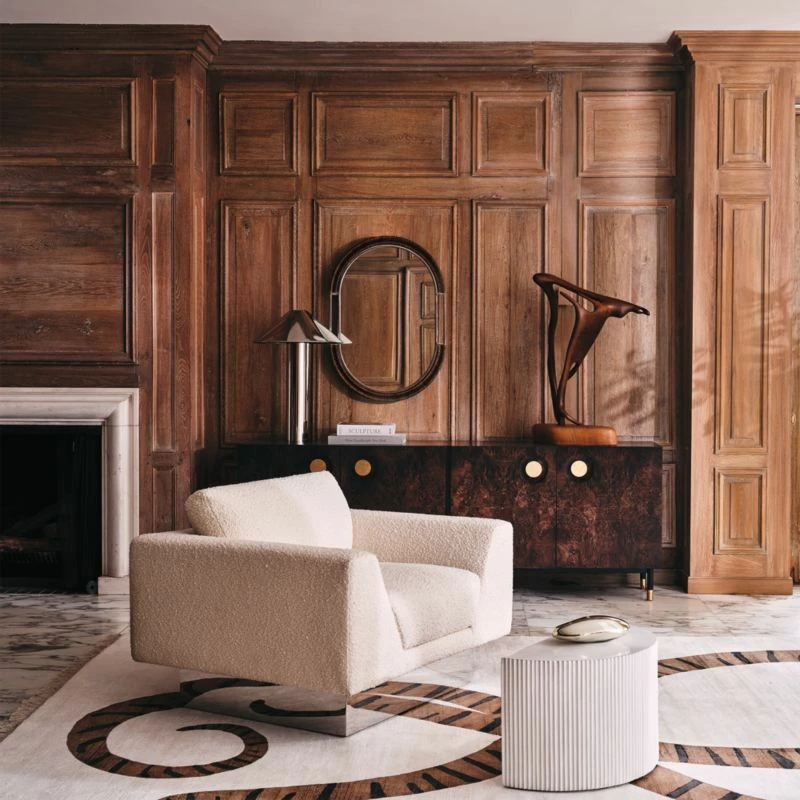 - Enhance your living room with the Noor Cream Boucle Lounge Chair, designed for both style and comfort. Its luxurious boucle fabric and sleek design make it a perfect addition to any modern home.