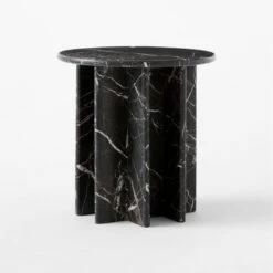 - Enhance your living room decor with the Pasar Round Black Marble Side Table. Its sleek black marble top and sturdy base make it a perfect addition to any modern or classic interior.