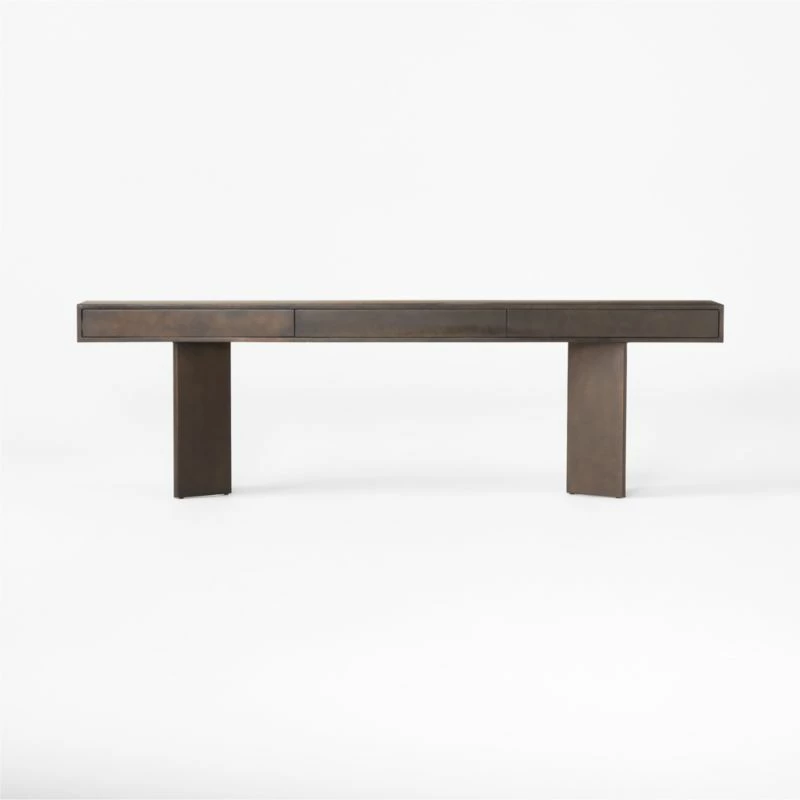 - The Petro Metal Clad Console Table 92” features a sleek and modern design, perfect for enhancing the aesthetic of your living room or entryway.
