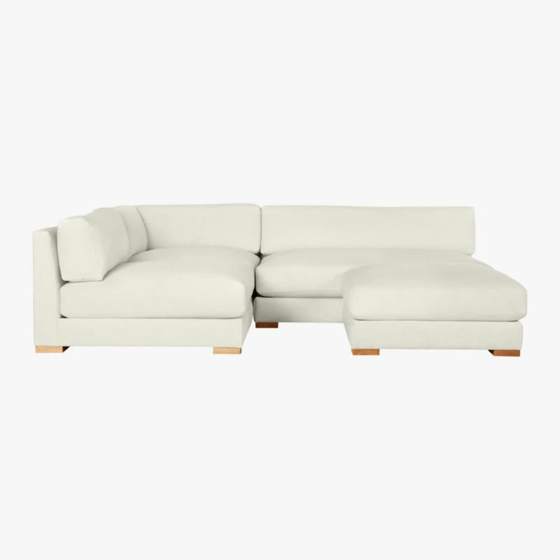 - Enhance your living room with the Piazza 4-Piece Modular White Linen Sectional Sofa. This 105″ sectional offers a modern and elegant design, perfect for any home decor.