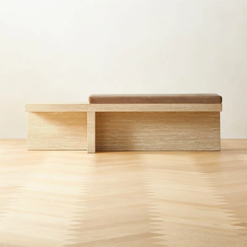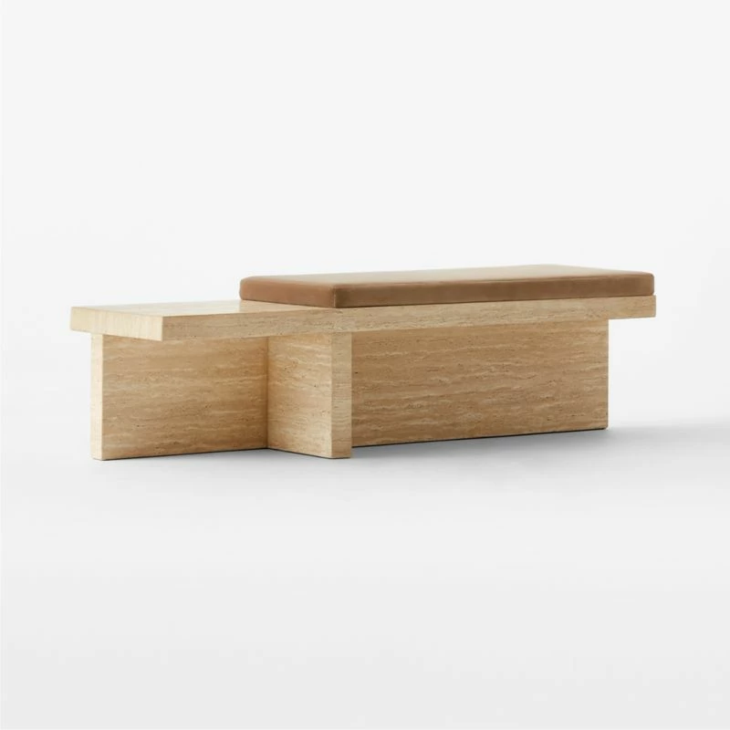 - Enhance your living room with the Pierre Travertine Bench, a piece of furniture that combines elegance and functionality.